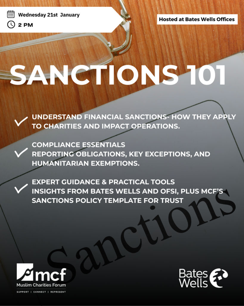 This seminar offers a clear overview of financial sanctions and their implications for charities. Participants will learn how sanctions are applied, their impact on charitable activities, reporting obligations, and key exceptions, including humanitarian exemptions.  There will be a focus on how charities can navigate these issues in practice. We will be joined by experts Augustus Della-Porta and Jess Collings from Bates Wells and the Office of Financial Sanctions Implementation (OFSI). The session will also introduce MCF’s sanctions policy template for trustees, a practical resource available via our website.